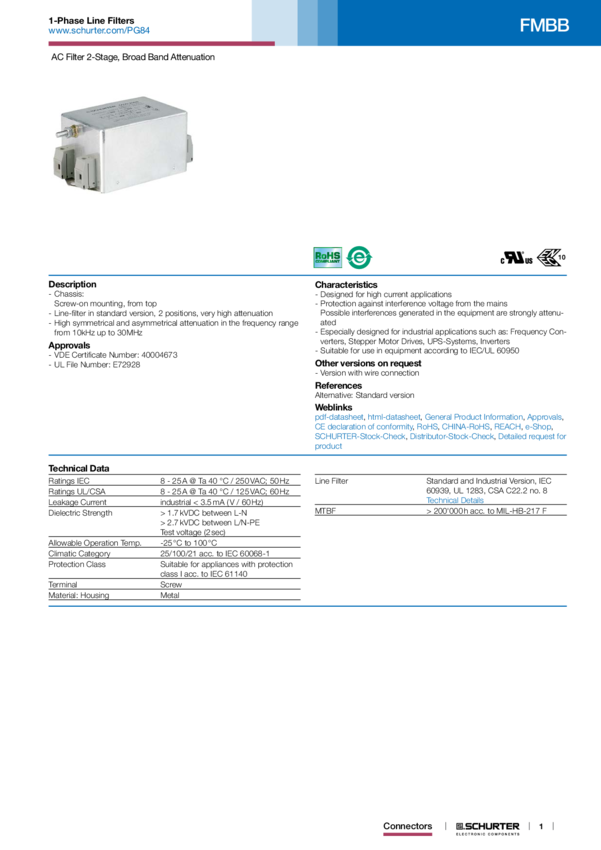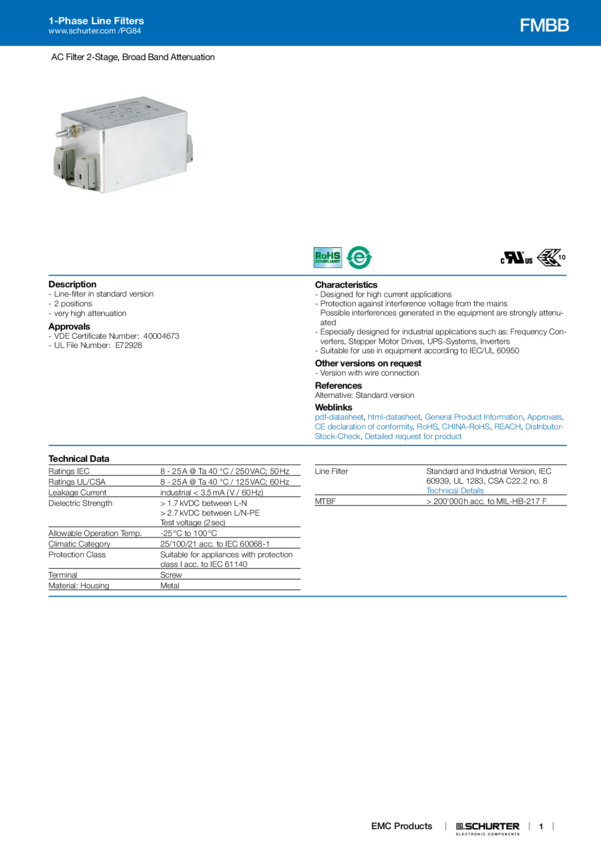 FMBB Filter 1PH 2ST 16A 250VAC