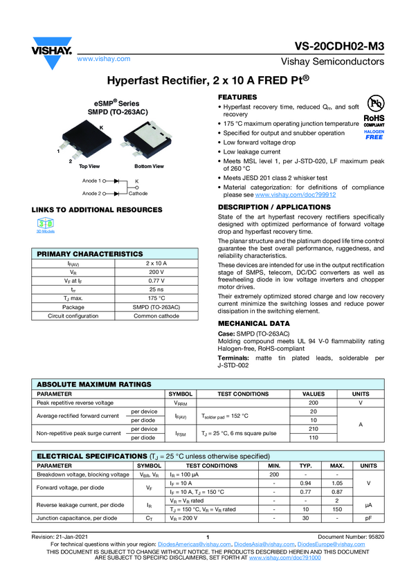 Hyperfast Rectifier, 2 x 10 A FRED Pt®