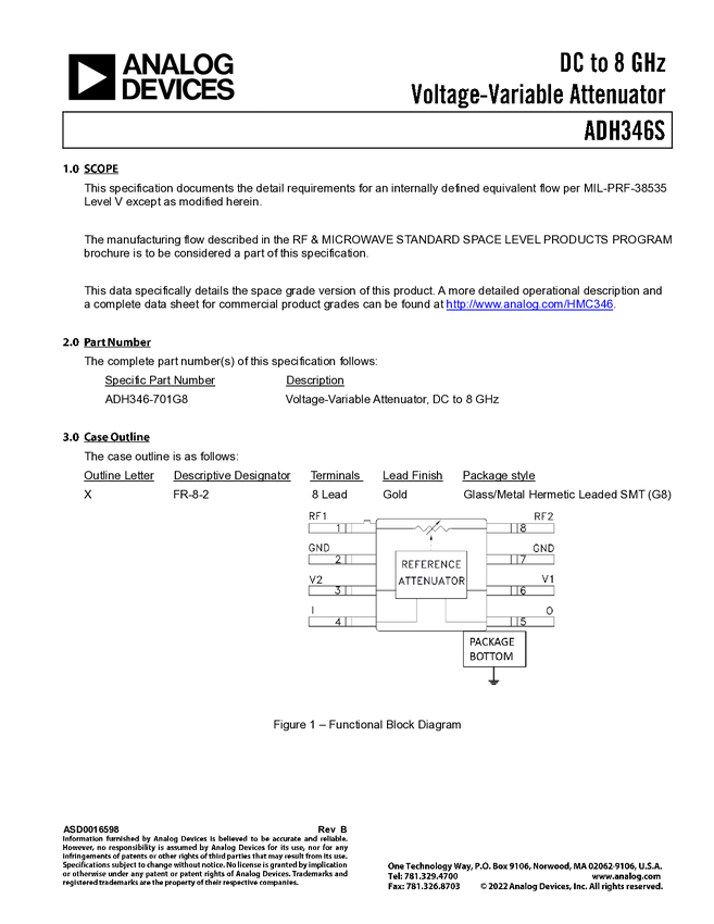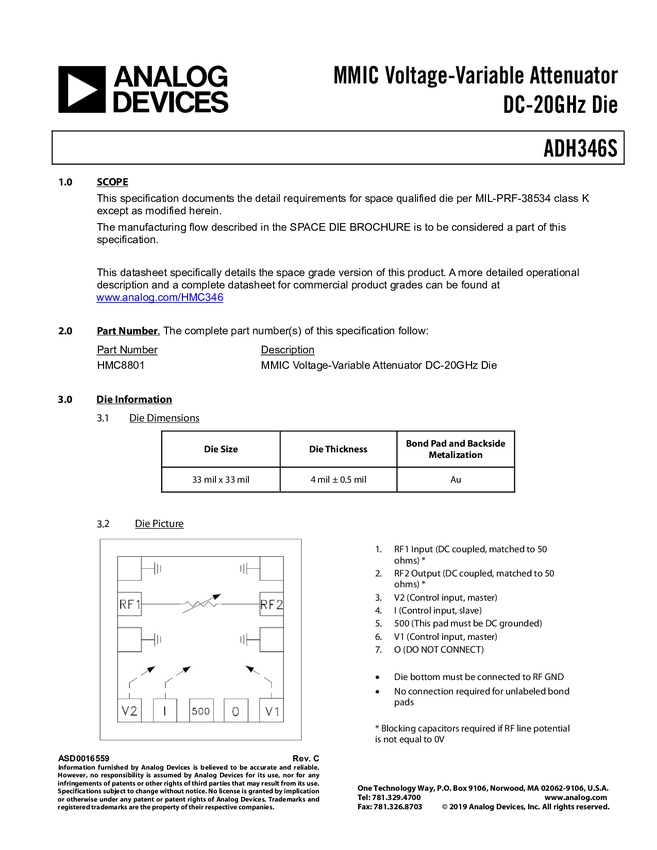 Space MMIC Voltage-Variable Attenuator DC-20GHz