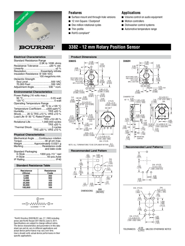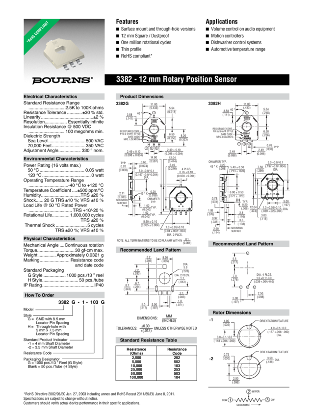 Rotational Type Position Sensors 20G Shock 16V 3-Pin SMD T/R