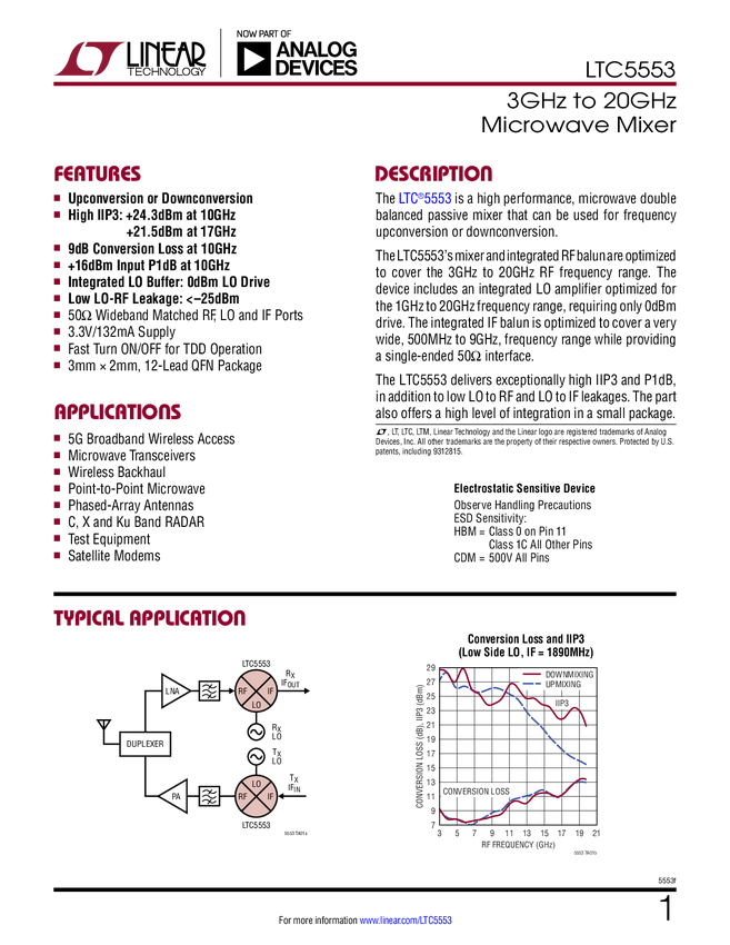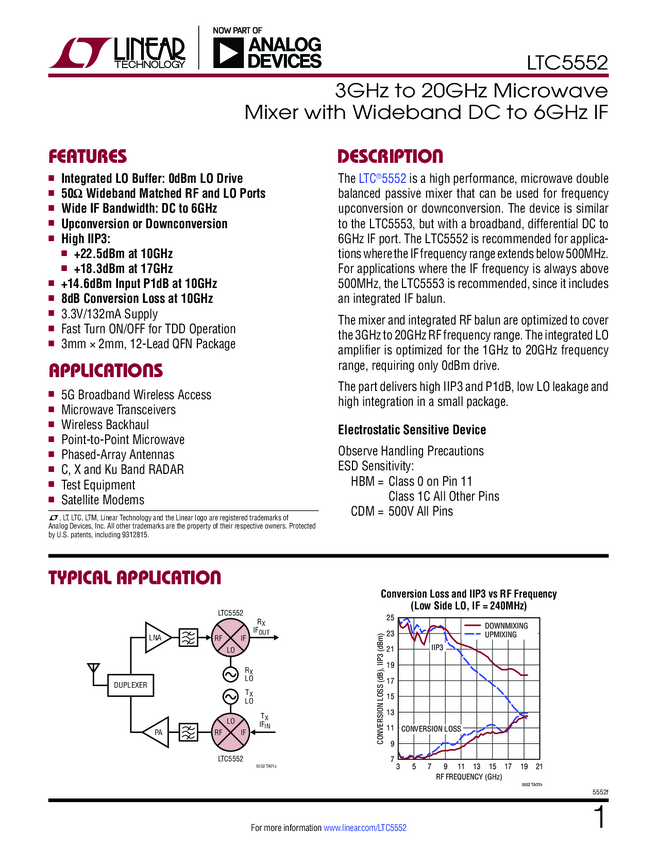 3GHz to 20GHz Microwave Mixer with Wideband DC to 6GHz IF
