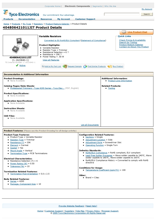 Res Cermet Trimmer 20K Ohm 25% 1/5W 1(Elec)/1(Mech)Turn (6.81 X 8.1 X 7.62mm) Pin Thru-Hole Bag