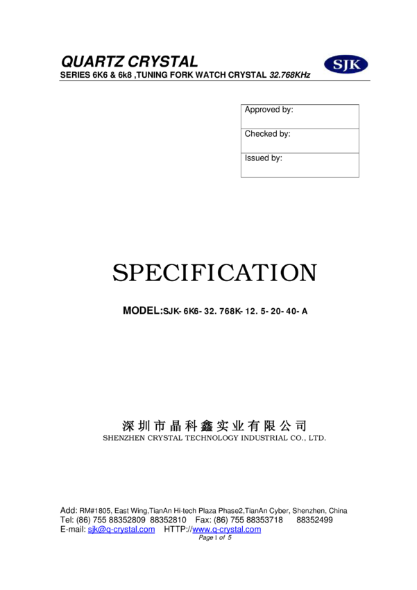 Rezonator kwarcowy 32.768kHz, SMD, (2.0x1.2x0.6) 20ppm, 12,5pF, SJK