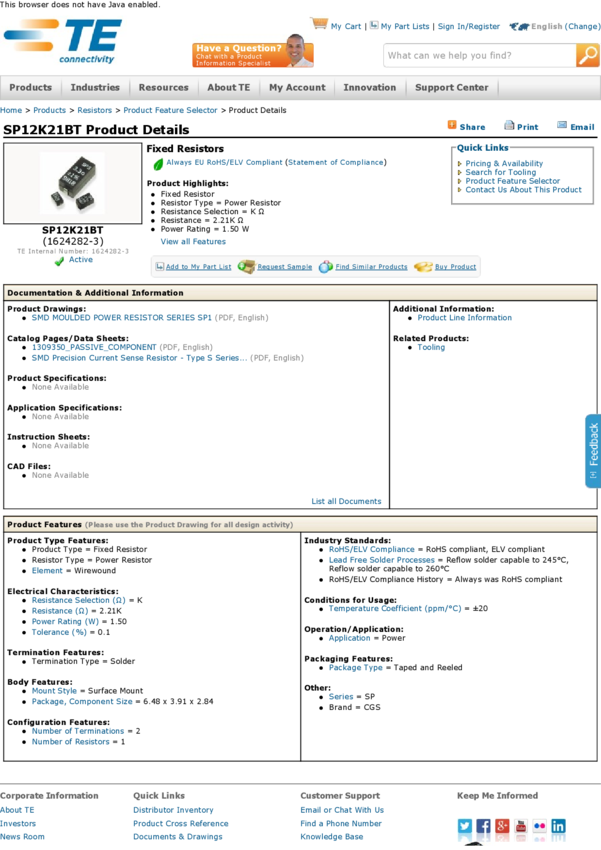 Res Wirewound 2.21K Ohm 0.1% 1.5W ±20ppm/°C Molded SMD