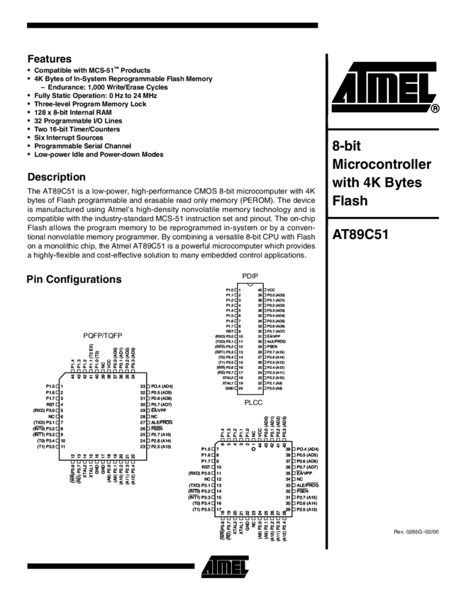 Mikrokontroler 8-bit AVR, 2KB Flash, 128B EEPROM, 128B SRAM, SOL20, 2.7...5.5V