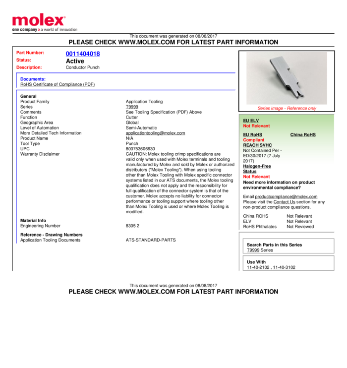 Insulation Punch for 11-40-2102 Terminator Dies and 11-40-3102 Tool Kits
