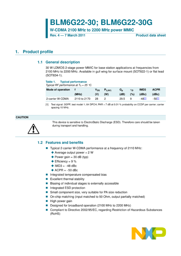 W-CDMA 2100 MHz to 2200 MHz power MMIC