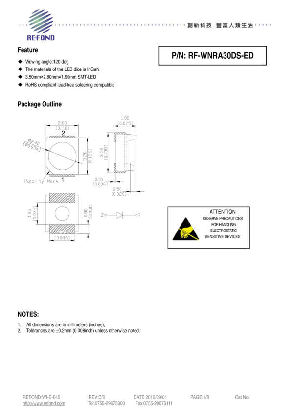 Dioda LED 2900-3100K, jasna 1500-2100mCd /20mA, dyfuzyjna, 120°, PLCC2, Refond