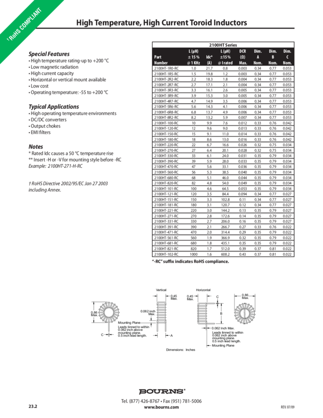 Ind High Current Toroid 2.2uH 15% 1KHz 18.3A RDL