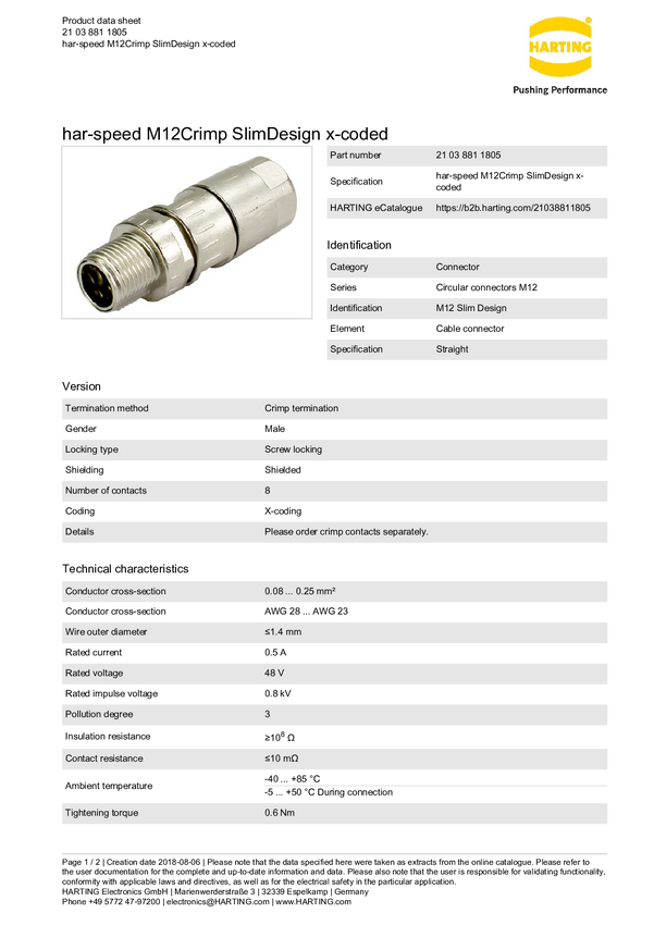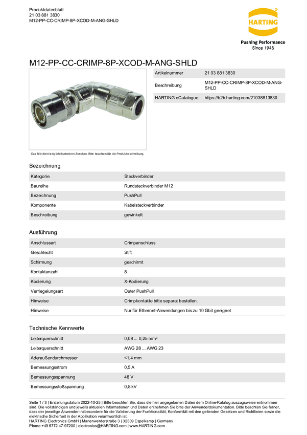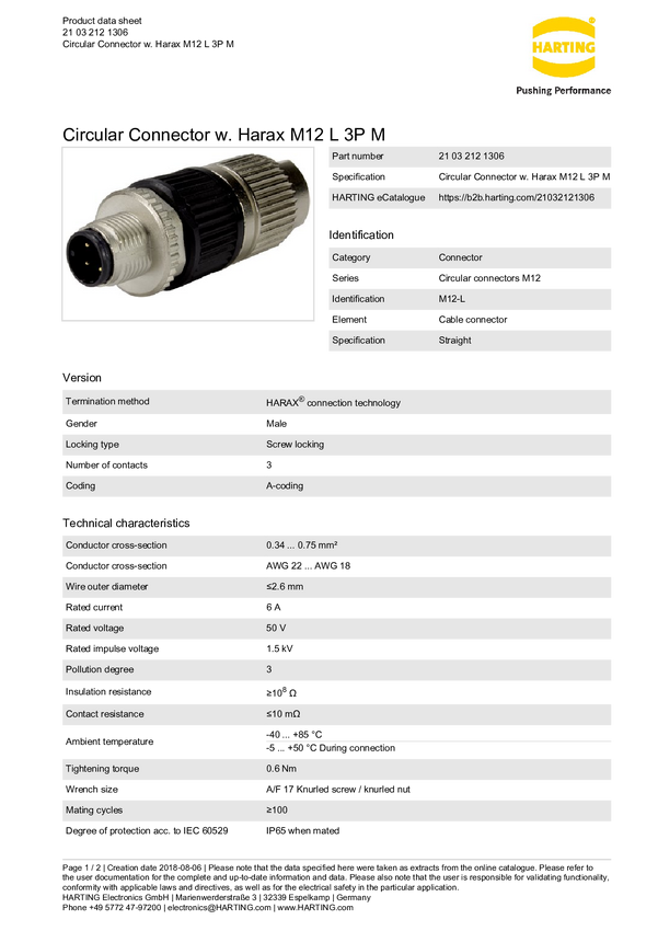 Harting 21032121306 Złącze męskie kablowe, 1 szt.