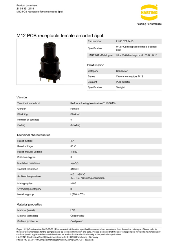 Harting 21033212418 Złącze męskie PCB złącze żeńskie proste 1 szt.