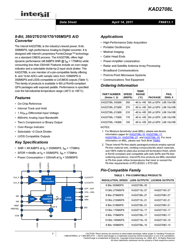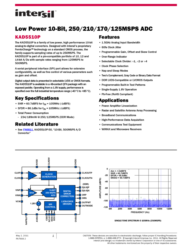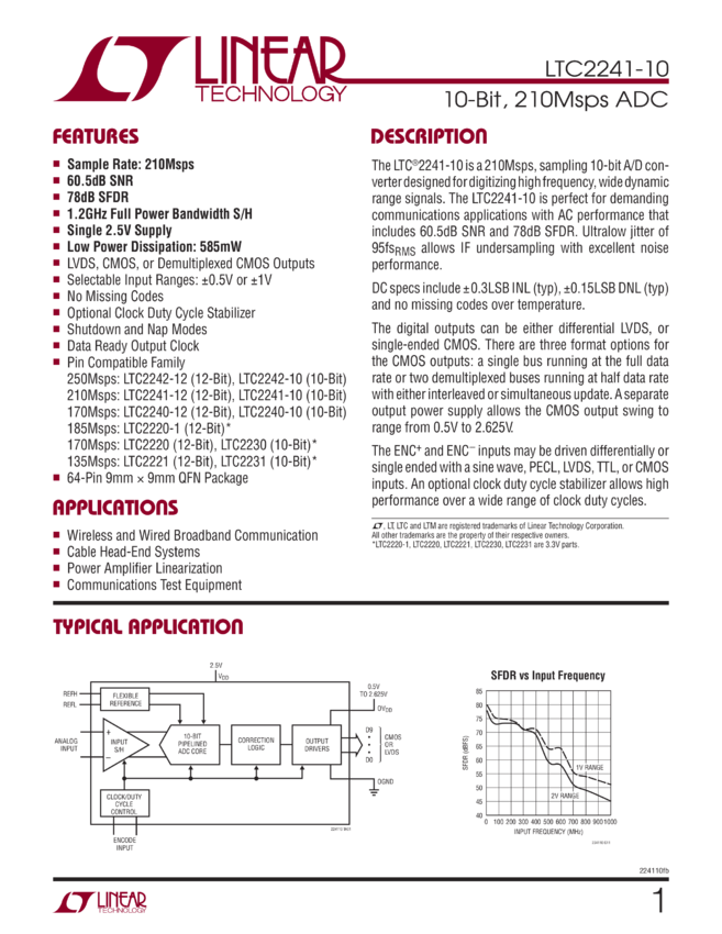1.8V, 10-Bit, 210Msps Analog-to-Digital Converter with LVDS Outputs for Wideband Applications