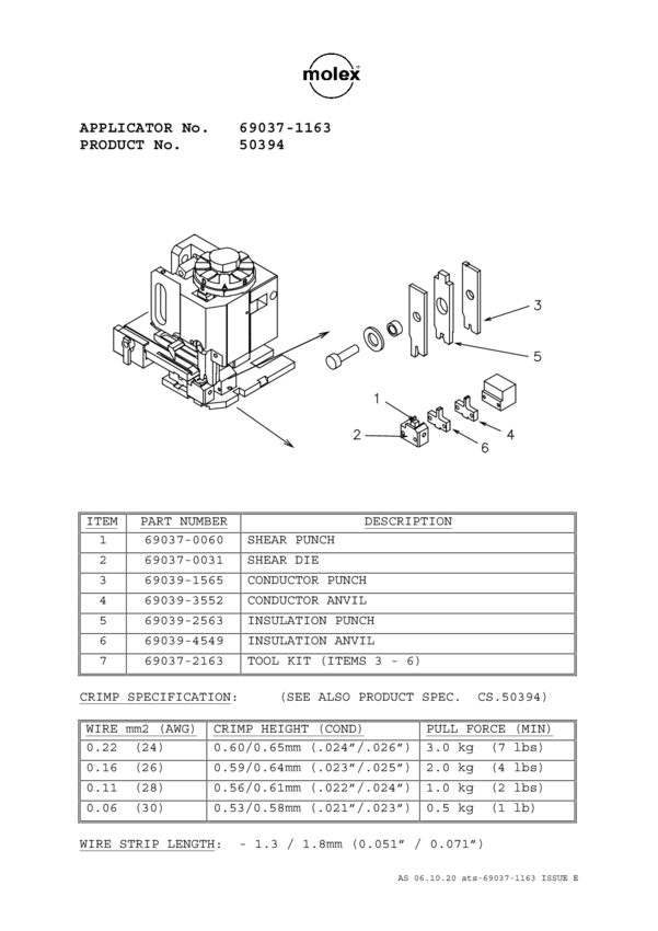 Conductor Punch for 69037-2091, 69037-2165 and 69037-2186 Perishable Tool Kits