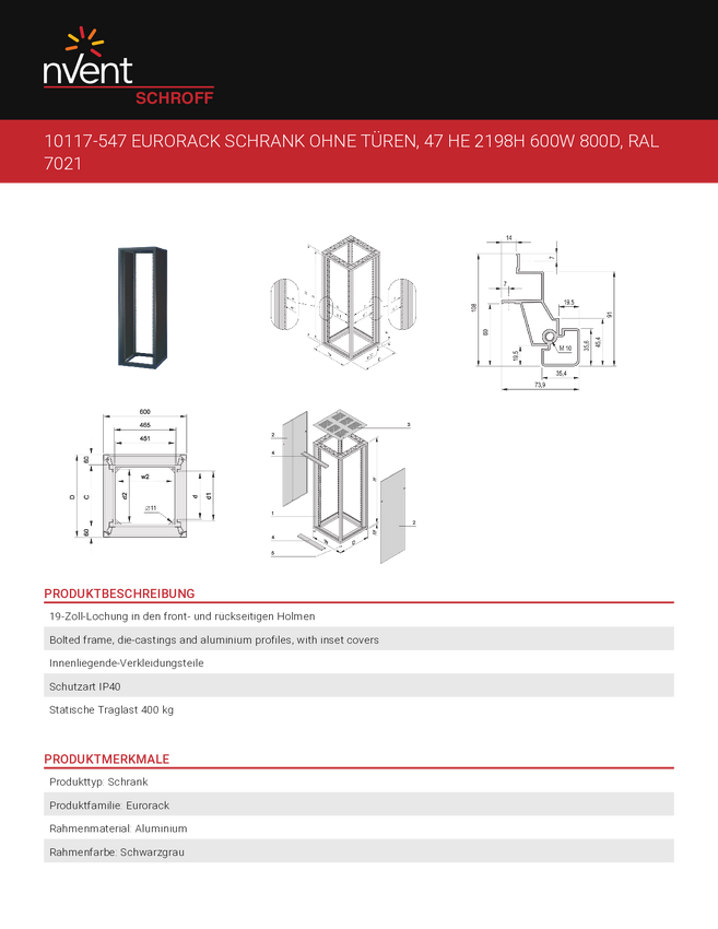 nVent SCHROFF 22117781 Rama szafki 600 x 2198 x 800 odlew aluminiowy czarno-szary 1 szt.