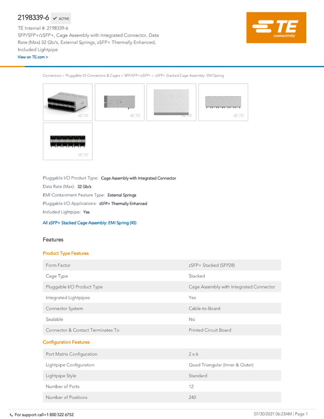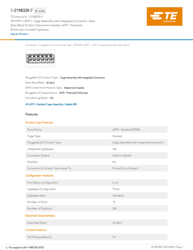 TE Connectivity TE AMP zSFP+ 1-2198339-7, 1 szt.