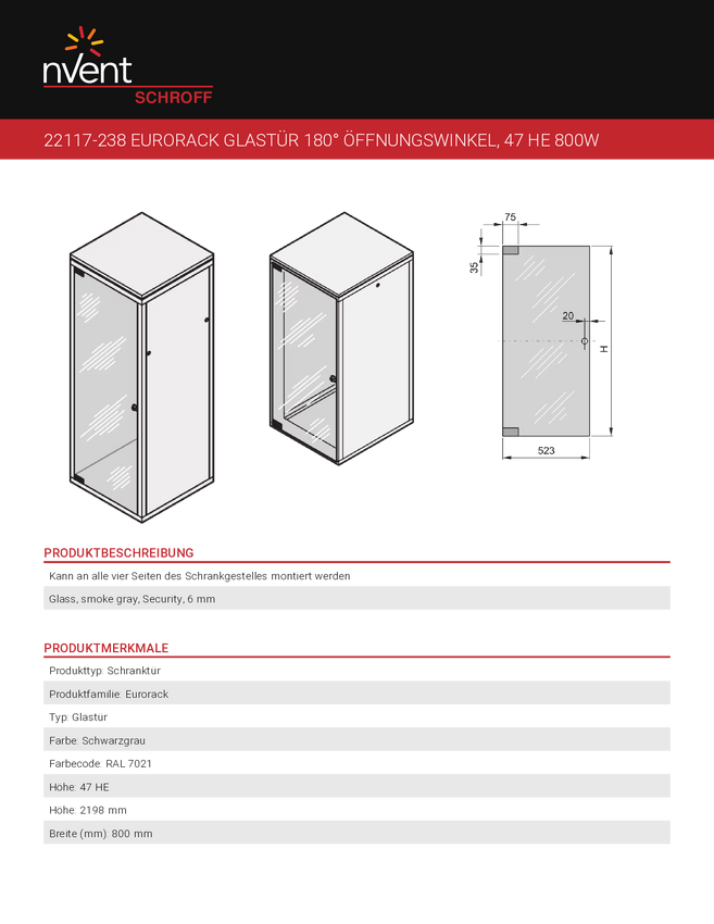 nVent SCHROFF 22117238 Drzwi (S x W) 800 mm x 2198 mm 1 szt.