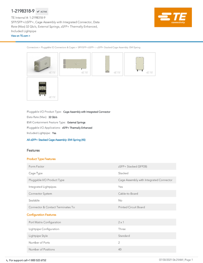 TE Connectivity TE AMP zSFP+ 1-2198325-7, 1 szt.