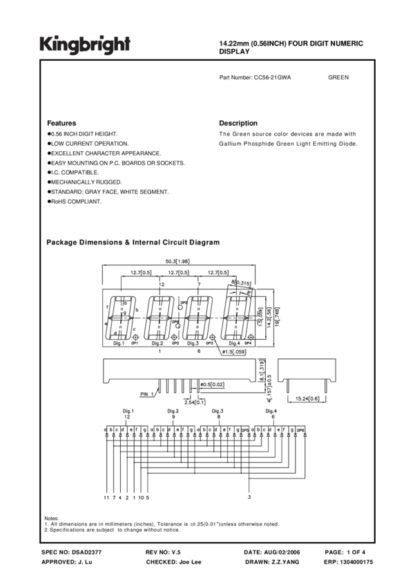 Displays Segmented Panel 1DIGIT 15LED Green 16-Pin Tube
