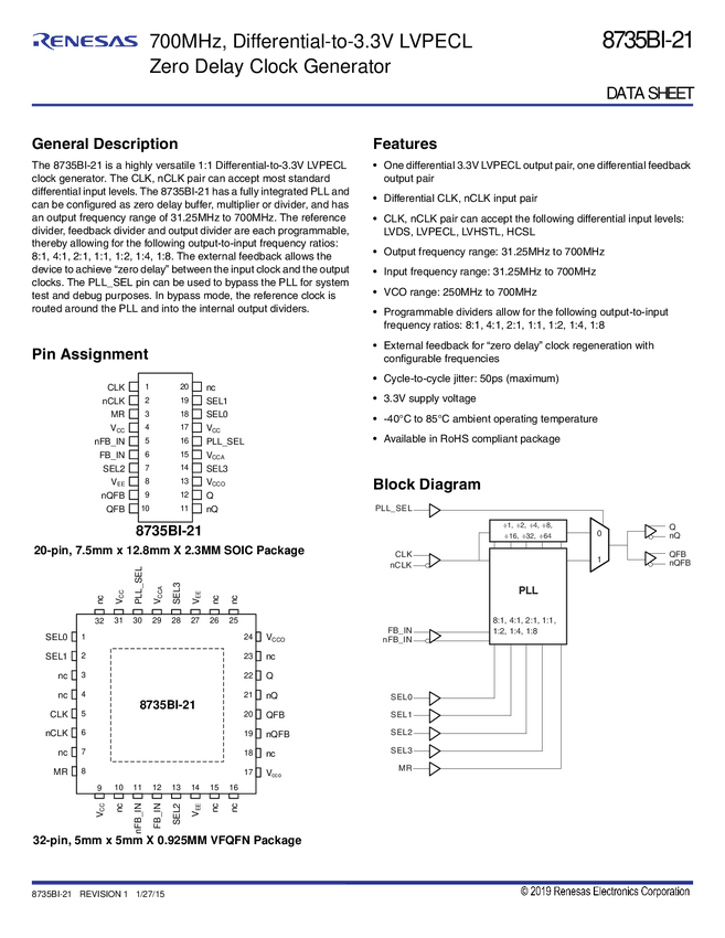 700MHz, Differential-to-3.3V LVPECL Zero Delay Clock Generator