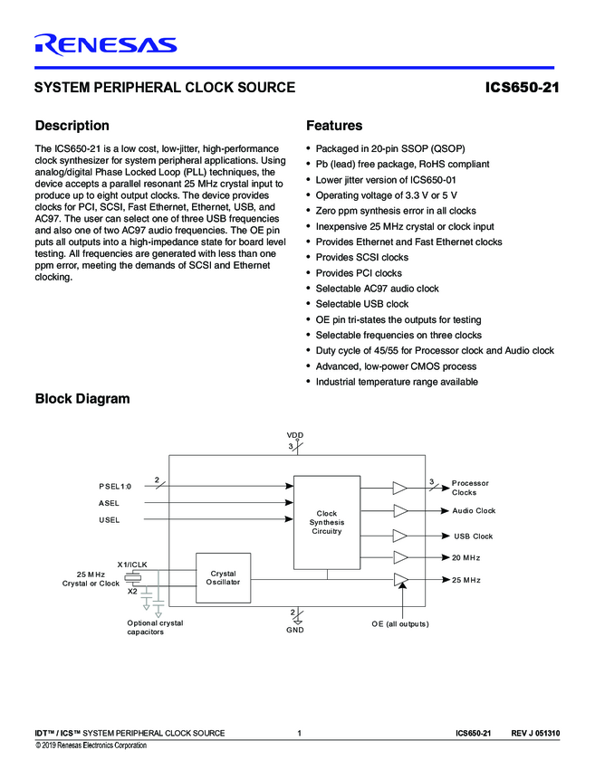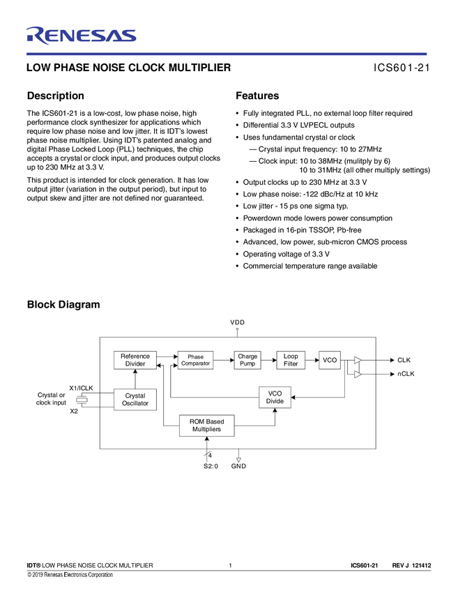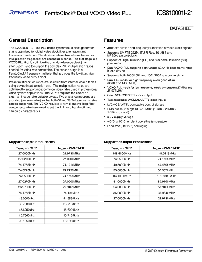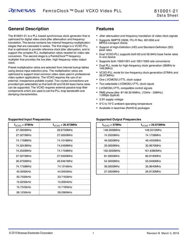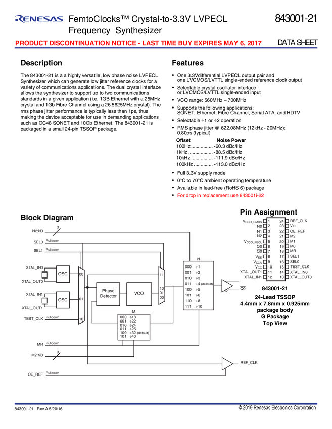 FemtoClock Crystal-to-3.3V LVPECL Frequency Synthesizer