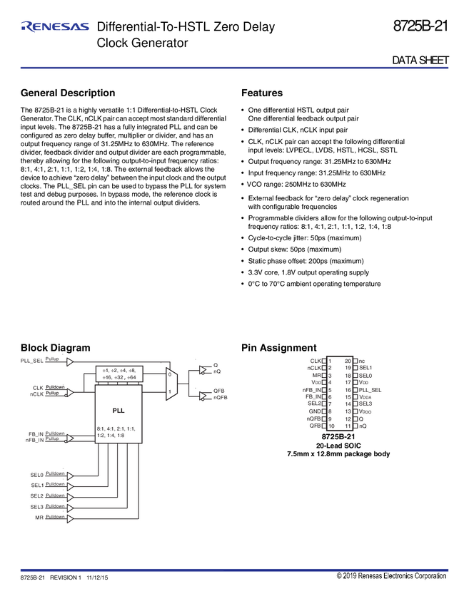 Differential to HSTL Zero Delay Buffer Clock Generator