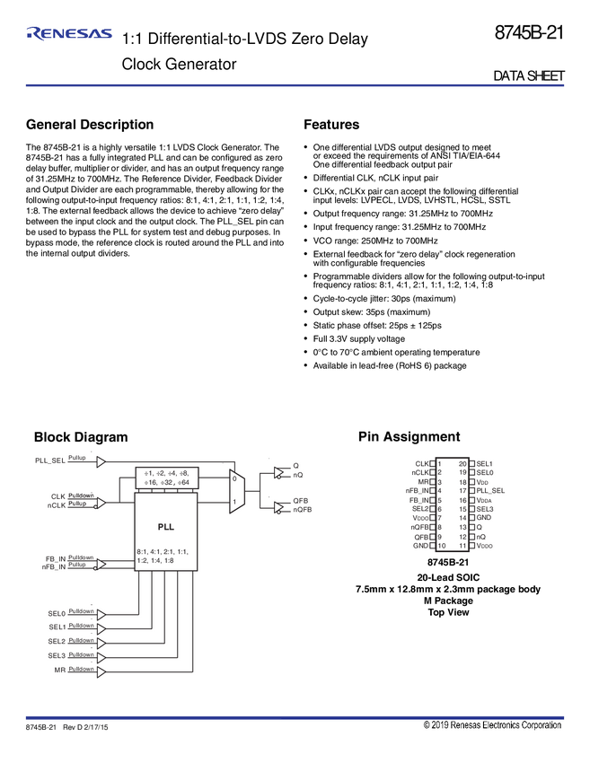 1:1, Differential-to-LVDS Zero Delay Clock Generator