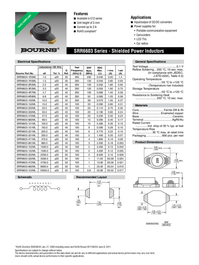 Ind Power Shielded Wirewound 10uH 20% 1KHz 21Q-Factor Ferrite 3A T/R