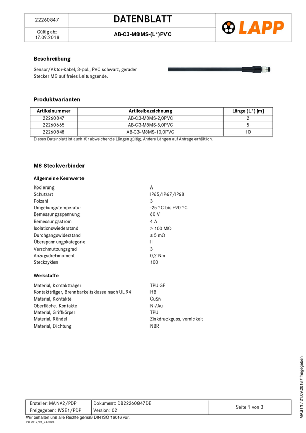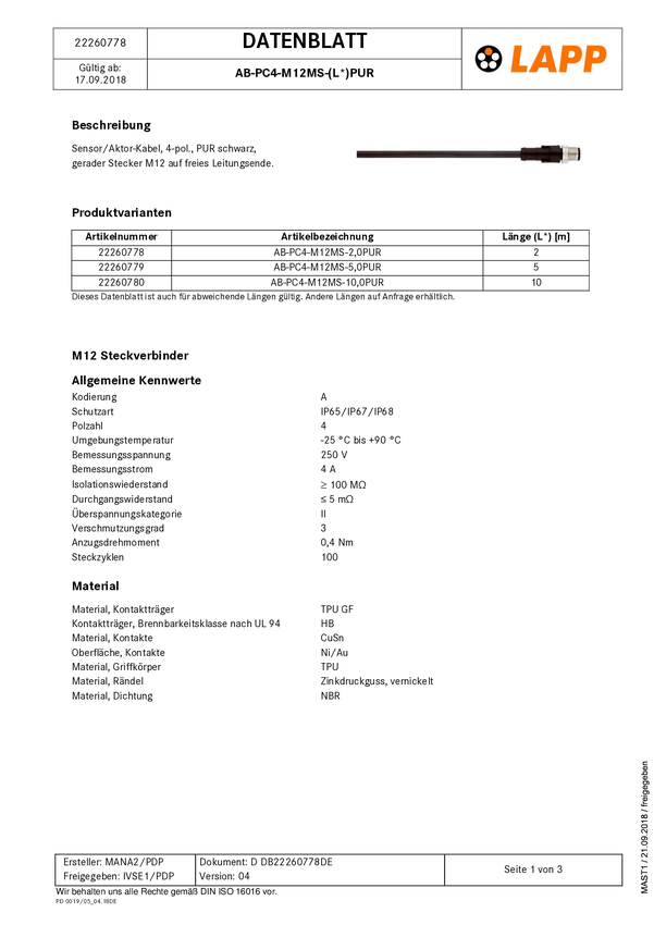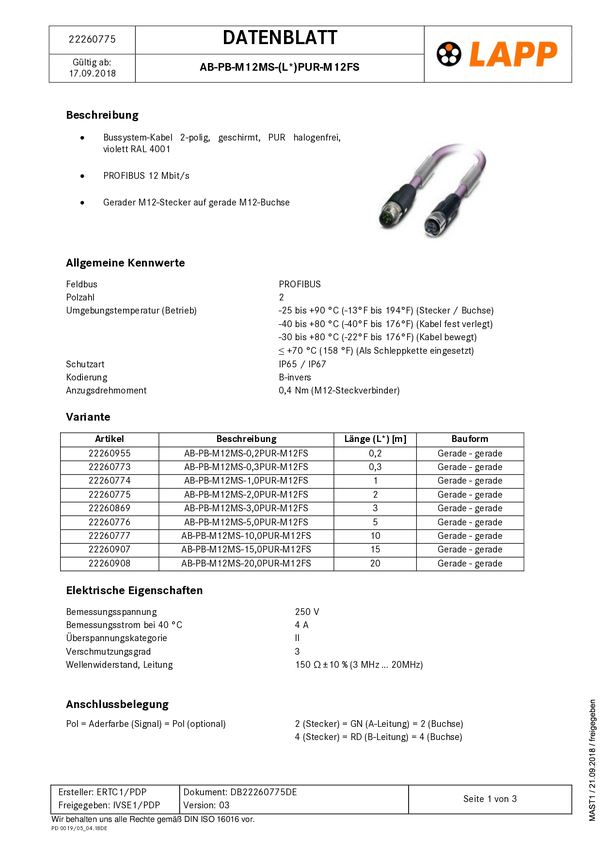 LAPP 22260585 Konfekcjonowane złącze danych czujnika/aktuatora 1 szt.