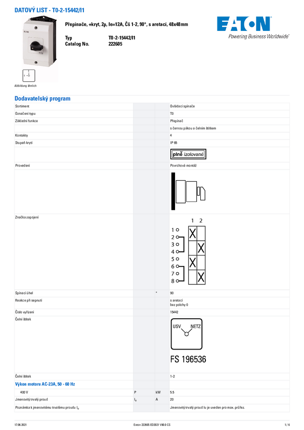 Eaton 222605 T0-2-15442/I1 Wyłącznik 1 szt.