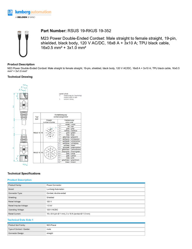 Lumberg Automation 2234 Kabel połączeniowy czujnika/aktuatora M23 złącze męskie proste, złącze, proste 10.00 m Ilość pin