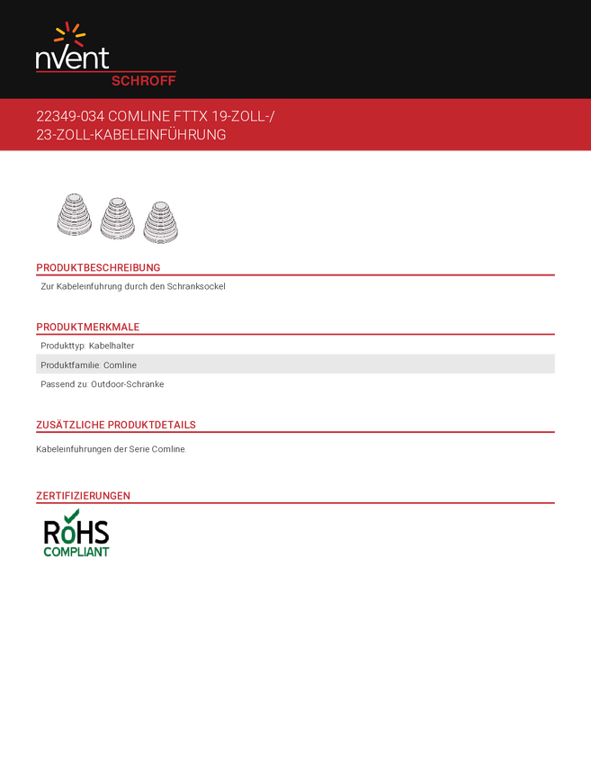 Tuleja kablowa nVent SCHROFF 22349034 22349034, 1 szt.