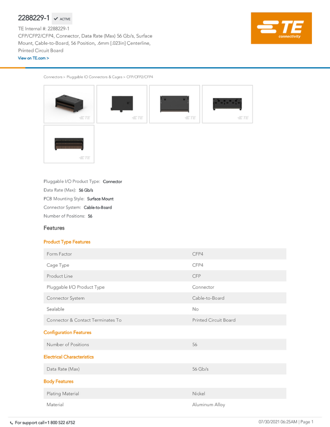 TE Connectivity TE AMP zSFP+ 2288172-7, 1 szt.