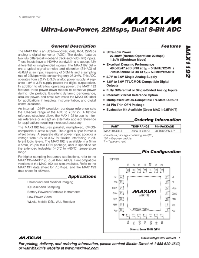 Ultra-Low-Power, 22Msps, Dual 8-Bit ADC