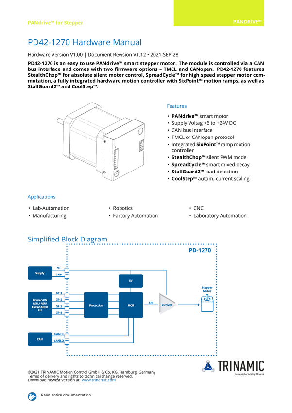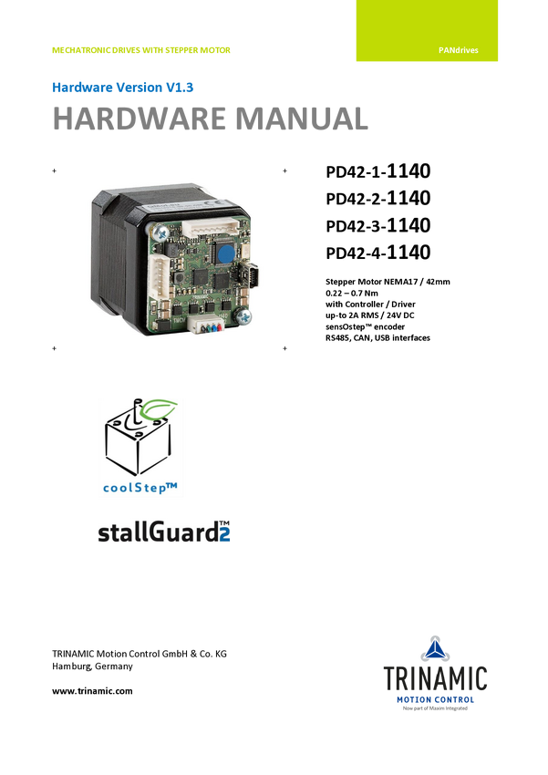 NEMA 17 smart stepper motor 22Ncm, 256 µSteps, SixPoint ramp controller with CAN interface, SensOstep, StallGuard2 and CoolStep, StealthChop