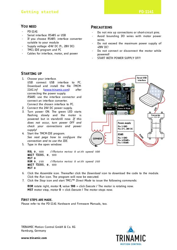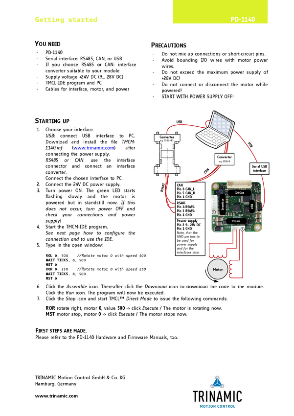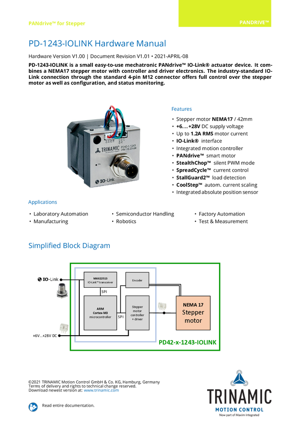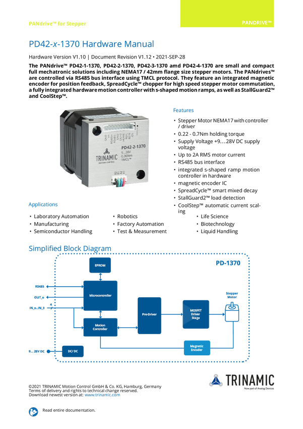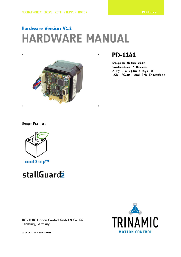 NEMA 17 smart stepper motor 10 to 30V, 22Ncm, 256 µSteps, SixPoint ramp controller, with USB, S/D, CAN and RS485 interface, SensOstep, StallGuard2 and CoolStep, StealthChop