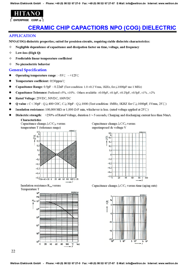 Cap Ceramic 22pF 2000V N750 10% (7 X 4mm) Radial 7.5mm 85°C T/R