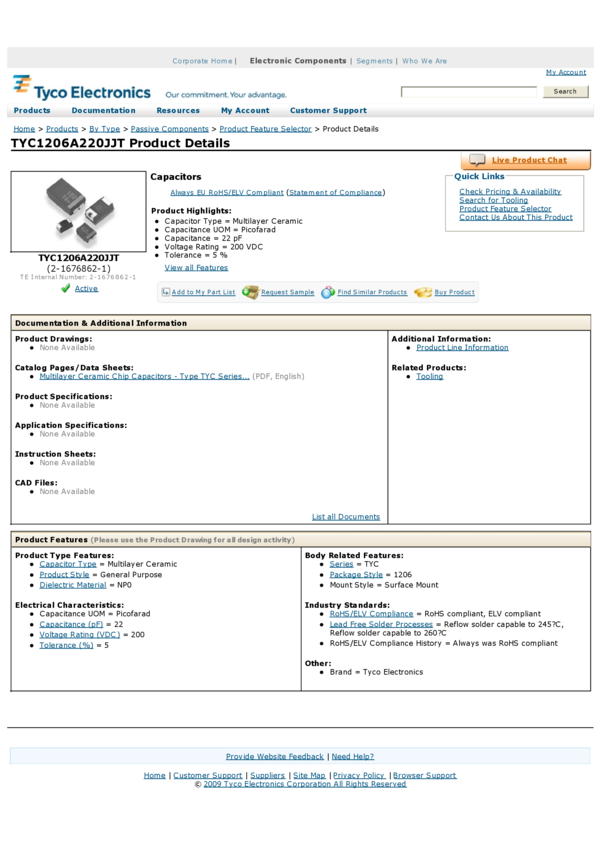 Cap Ceramic 22pF 200V C0G 5% SMD 1206