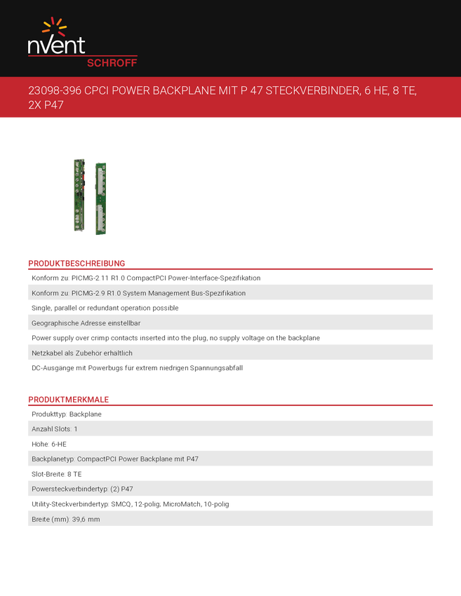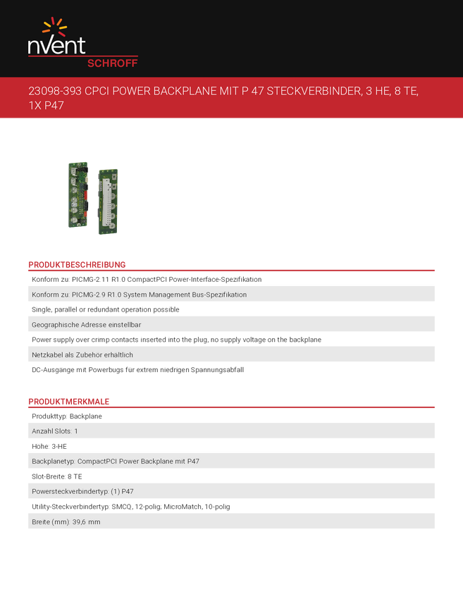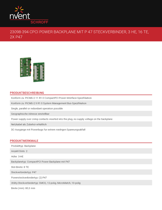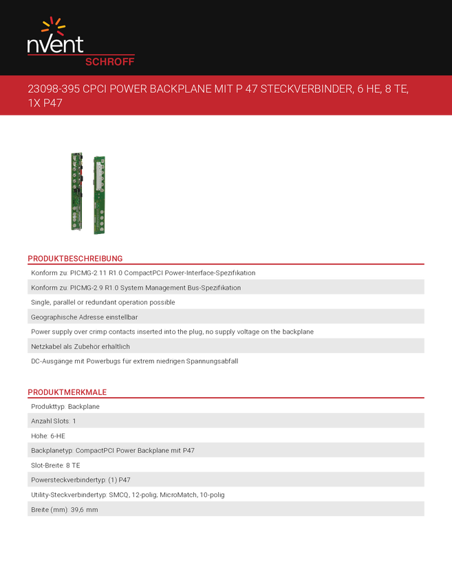nVent SCHROFF 23098395 Płyta drukowana magistrali wielobarwny 1 szt.