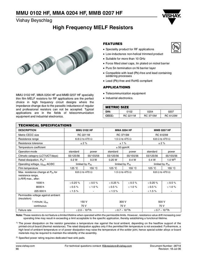 Res Carbon Film 2309 2K Ohm 2% 2/5W Conformal SMD Melf Blister T/R