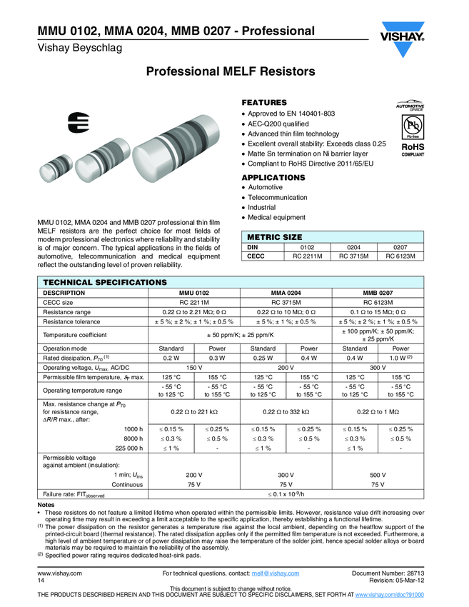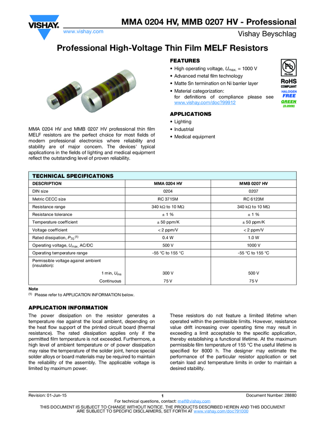 Res Thin Film 2309 1M Ohm 1% 2/5W ±50ppm/°C Conformal SMD Melf Blister T/R