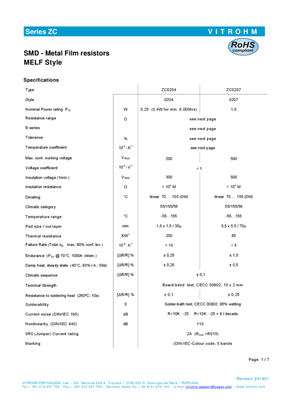 Res Carbon Film 2309 470K Ohm 1% 2/5W Conformal SMD Melf Blister T/R