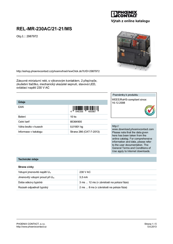 Phoenix Contact REL-MR-230AC/21-21/MS Przekaźnik SMT 230 V/AC 8 A 2 zestyki przełączne 10 szt.