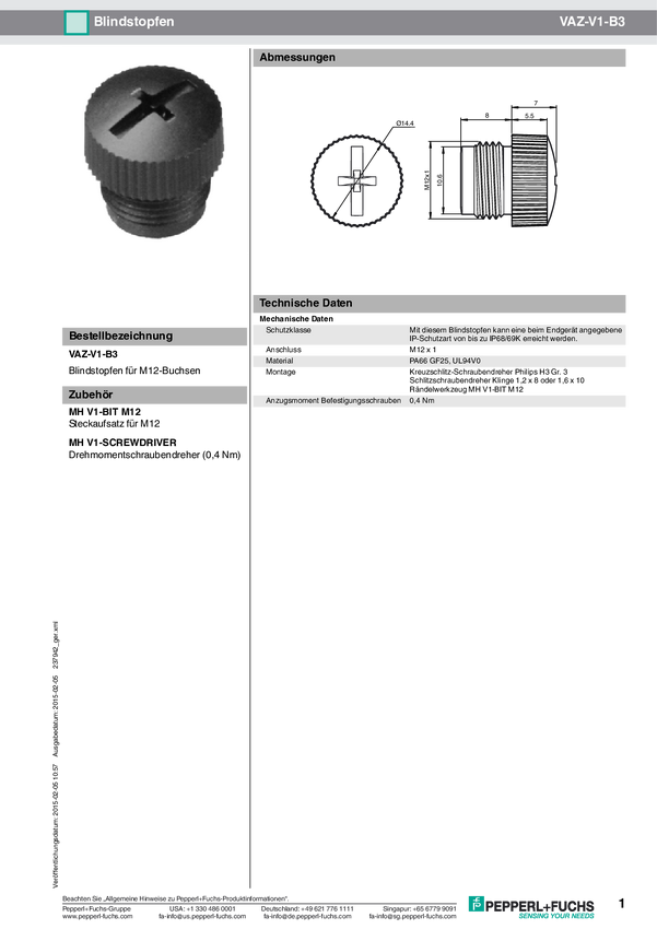 Pepperl+Fuchs VAZ-V1-B3 237942, 1 szt.