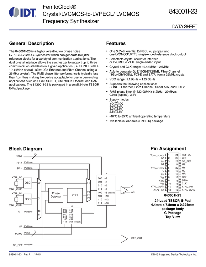 FemtoClock Crystal/LVCMOS-to-LVPECL/ LVCMOS Frequency Synthesizer