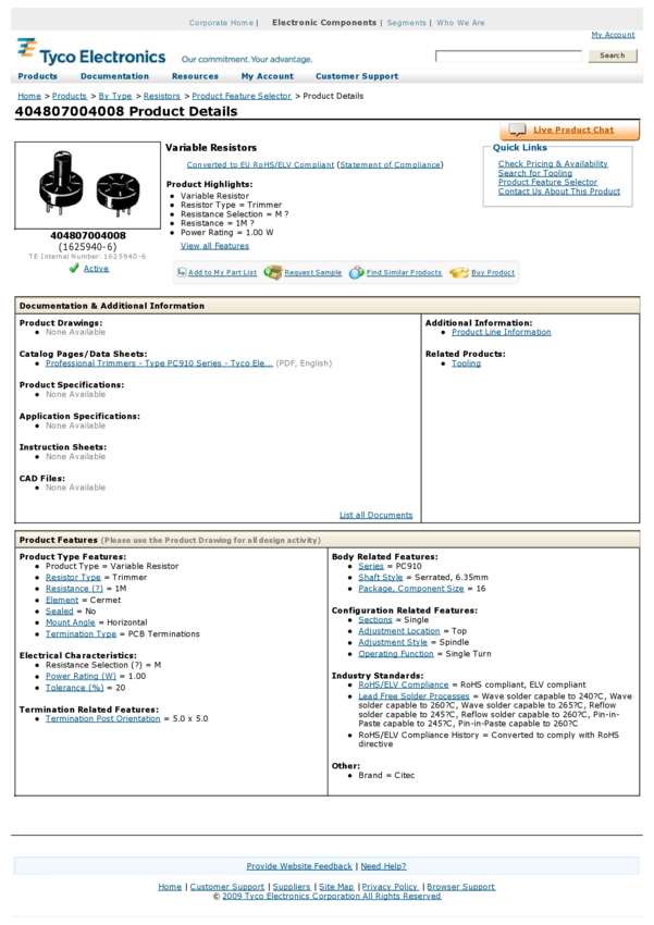 Res Cermet Trimmer 1M Ohm 20% 1W 1(Elec)/1(Mech)Turn 5.1mm (16 X 23mm) Pin Thru-Hole
