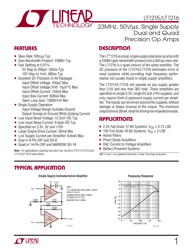 23MHz, 50V/µs, Single Supply Dual and Quad Precision Op Amps