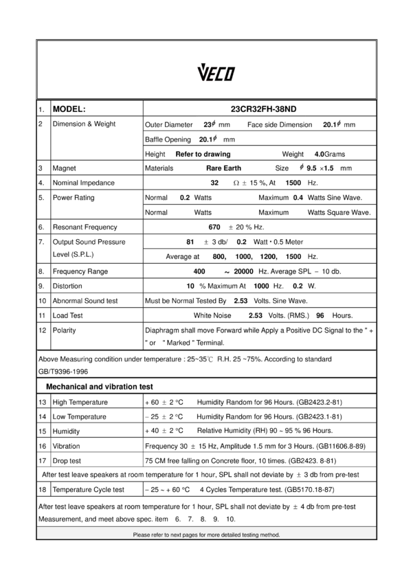 Głośnik LowProfil, 32Ω, 200mW, 400Hz-20kHz, fr=670Hz, D=23mm, h=5.3mm