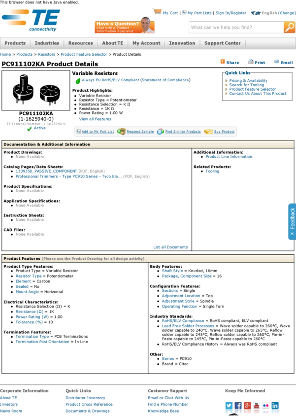 Res Cermet Trimmer 10K Ohm 10% 1W 1(Elec)/1(Mech)Turn (16 X 23mm) Pin Thru-Hole