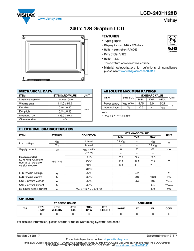 240 x 128 Graphic LCD