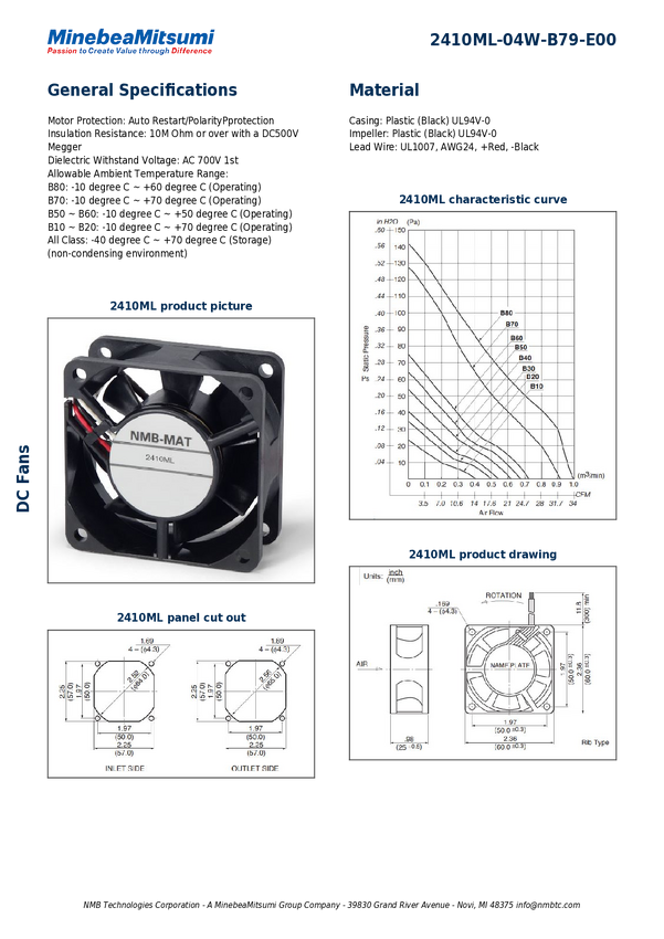 24V DC 10-27,6V DC 0,13A 3,2W 5300RPM 0,71m3/min 36dBA